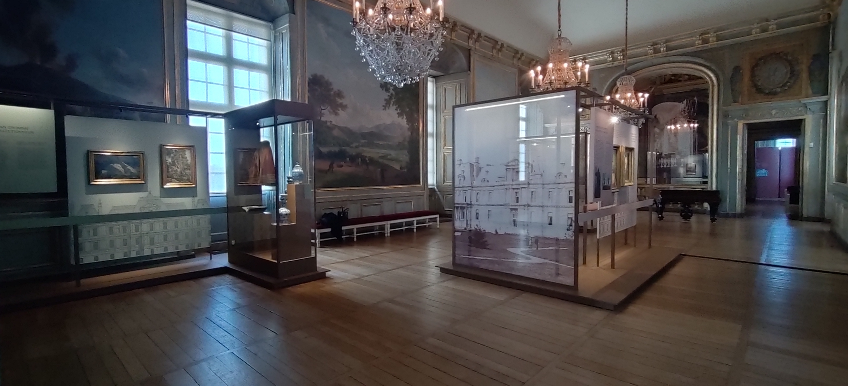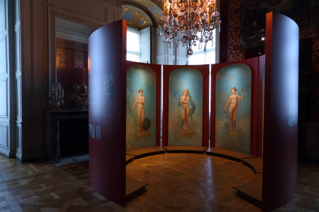 Un décor de Wilhelm Tilman Grommé a été retrouvé dans les salles du château et restauré à l’occasion de l’exposition, avec le concours de la Société des amis du château de Maisons. Ces peintures occupaient la place des miroirs, qui étaient à l’époque déposés, dans le précieux cabinet aux Miroirs. Elles représentaient, se détachant sur le ciel, nues et portant leurs attributs respectifs, des déesses antiques évoquant les décors de style Empire des palais de Saint-Pétersbourg. Le peintre avait réalisé un décor comparable dans la villa Onnela de Viborg, où sa mère aimait passer la belle saison et recevoir amis et parents. Avec cet ensemble de peintures décoratives, la fin du XIXe siècle retrouve sa place dans l’histoire du château de Maisons.