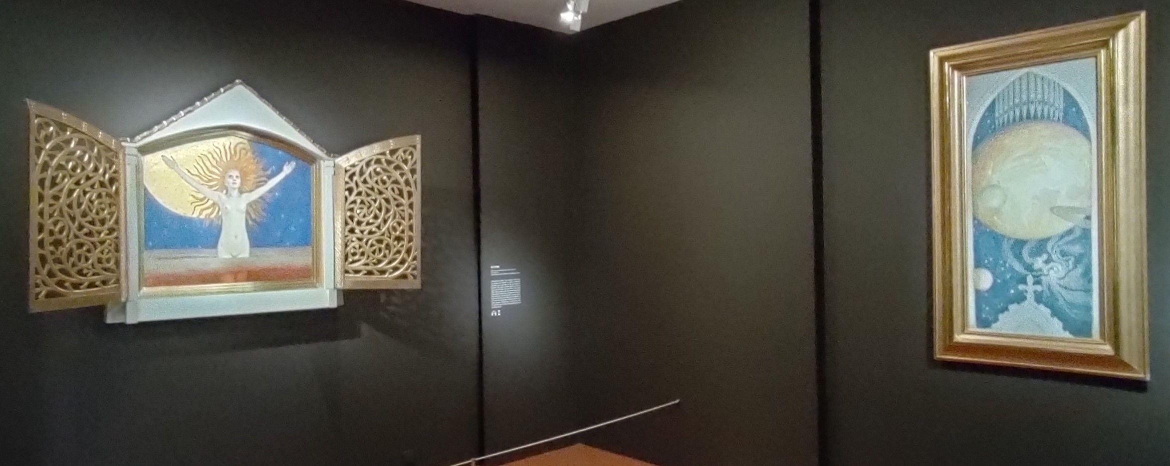 La projection de figures extatiques dans un espace cosmique s’appuie tant sur des observations scientifiques que sur des conceptions ésotériques répandues à l’époque. La théorie de l’Harmonie des sphères de Ptolémée, réinterprétée à l’aune du bouddhisme, suscite la vision d’un orgue céleste diffusant une musique dans l’espace. La réincarnation de l’âme s’opère quant à elle au travers d’une traversée de l’espace vers un astre lumineux.