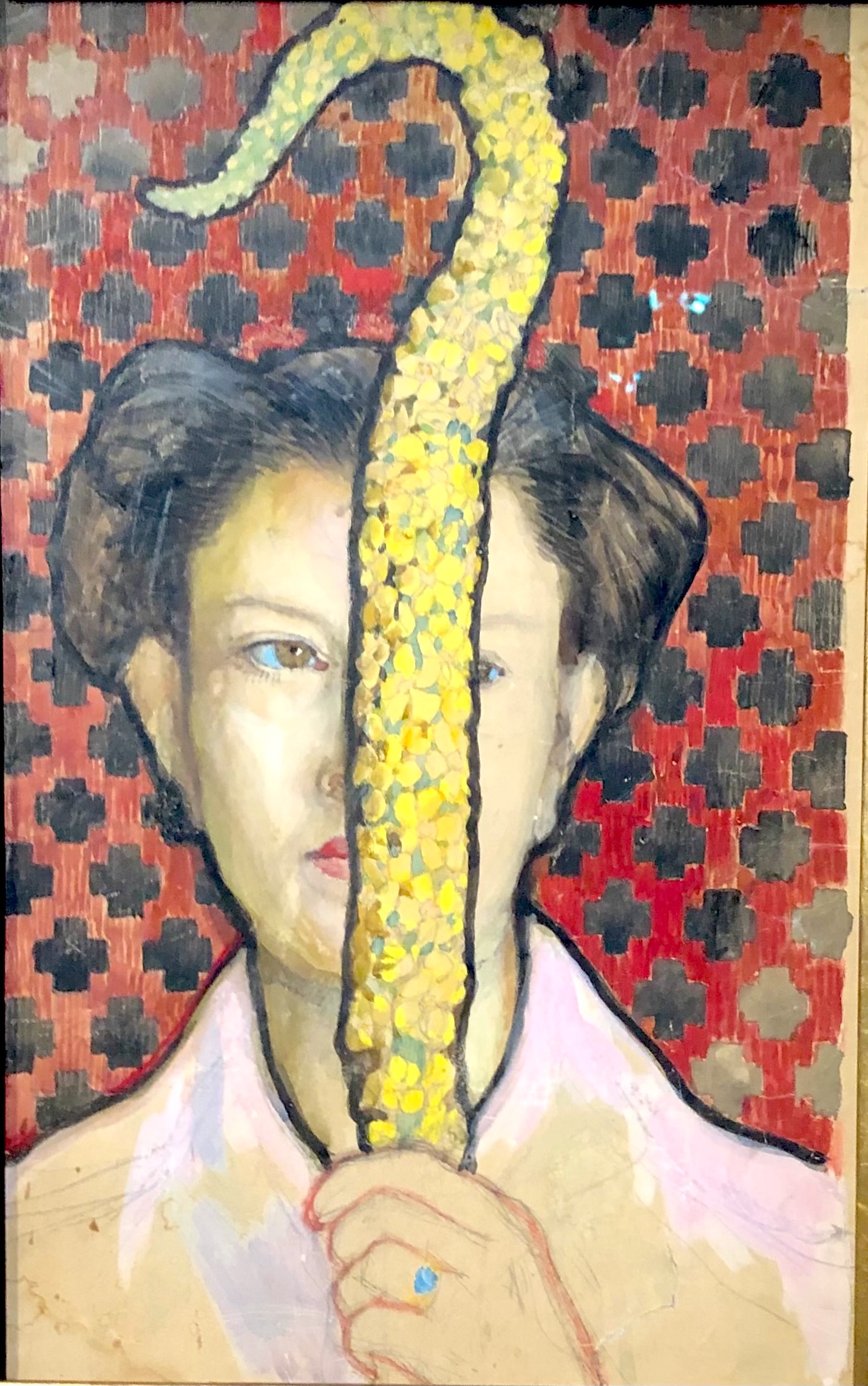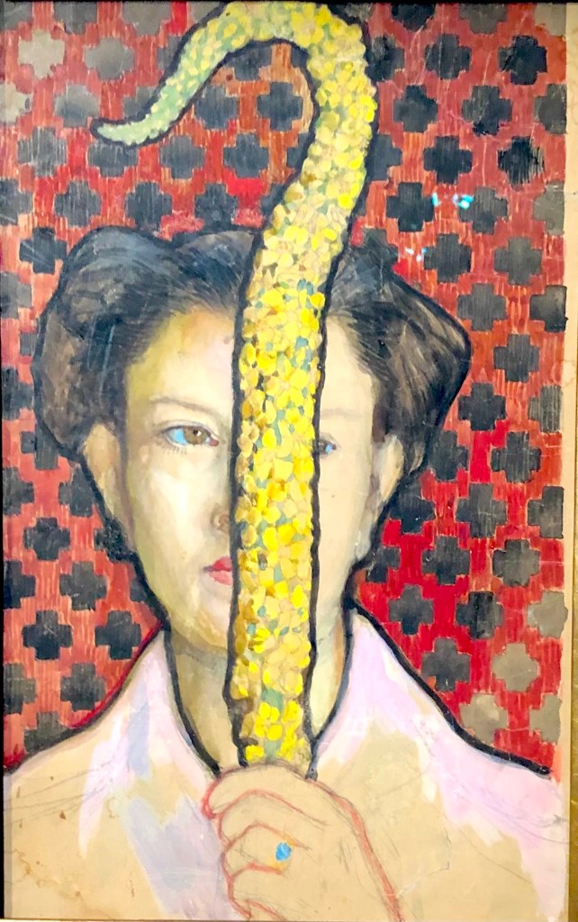 L’énigmatique Molène barrant le visage d’une jeune fille questionne le sens de la vie, à la manière du point d’interrogation qu’affecte la plante, ponctuée par une bague.