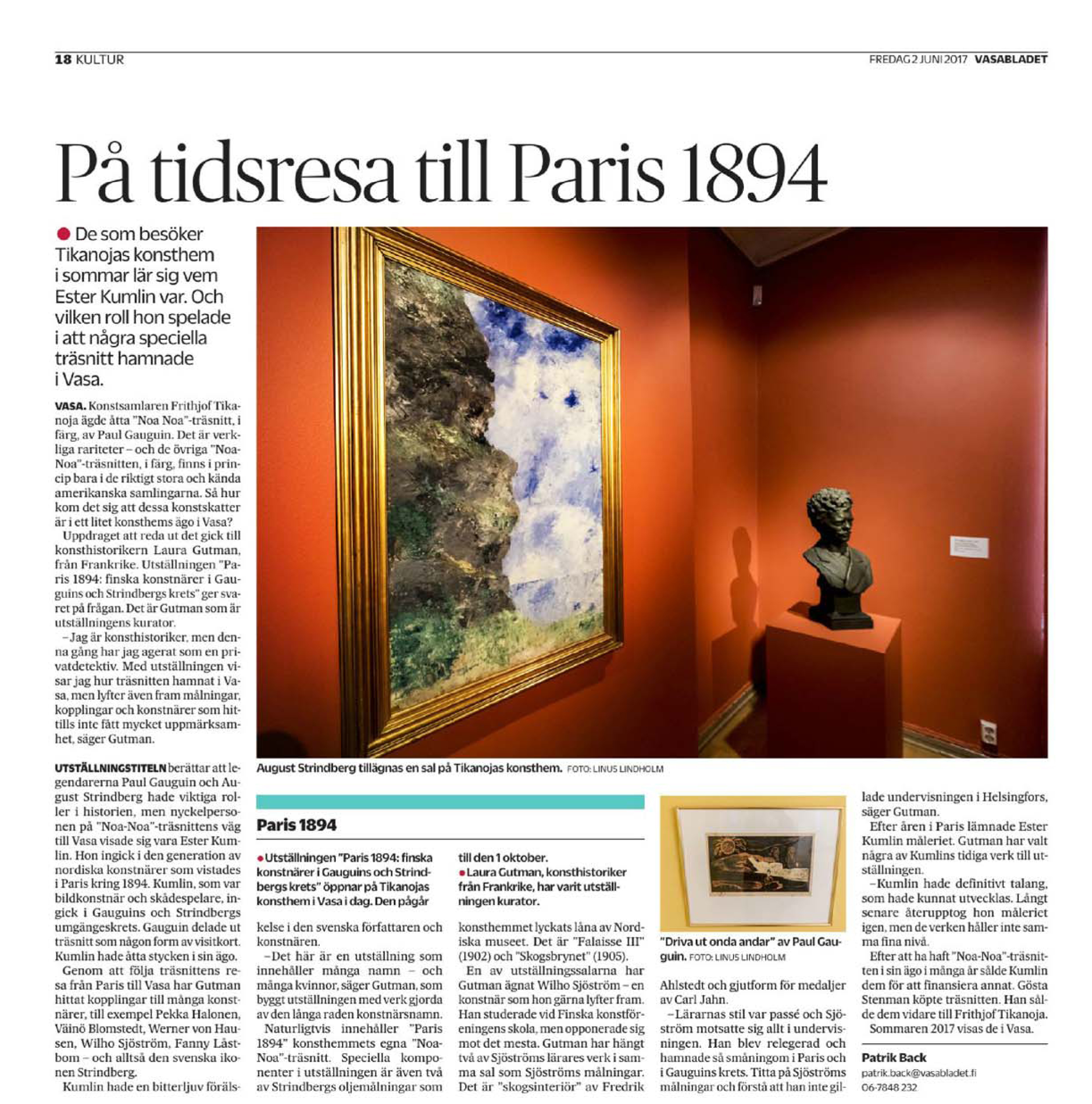 Utställningen går under rubriken « Paris 1894: finska konstnärer i Gauguins och Strindbergs krets », och på Tikanojas konsthem kan man förstås se i huvudsak målningar av de här konstnärerna men också träsnitt av Paul Gauguin som Ester Kumlin hade med sig hem. Verken har lånats från museer och privata samlare.